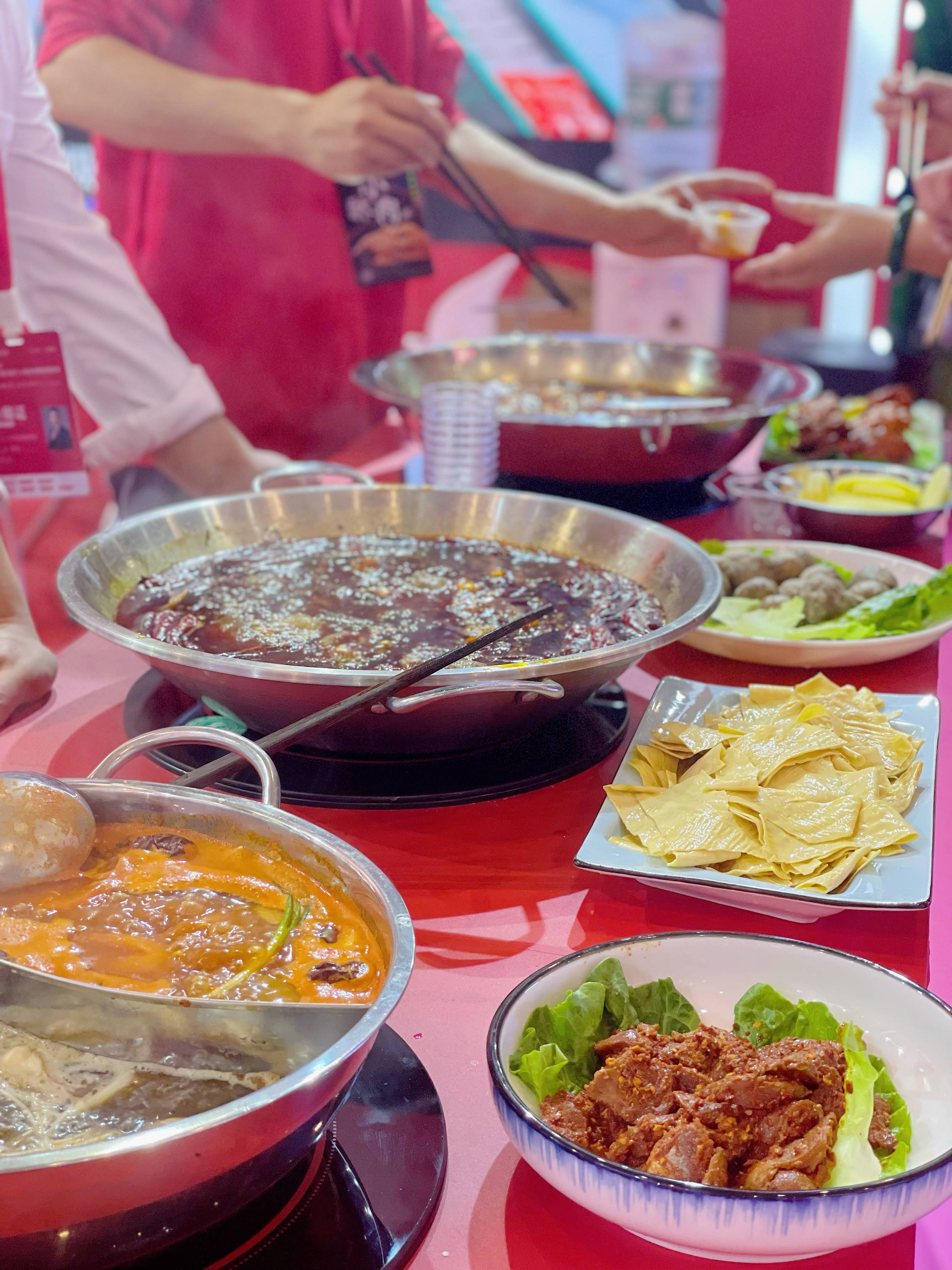 為了讓參會(huì )者更好地體驗“開(kāi)門(mén)紅”系列產(chǎn)品,漫味龍廚此次展位共設三個(gè)品嘗區域,以現煮試吃的方式讓大家品鑒手工牛油火鍋底料的傳統風(fēng)味,天府酵藏牛油火鍋底料的醇厚熱辣,以及番茄火鍋底料和菌湯火鍋底料的香濃。搭配新鮮的火鍋食材,吸引了大量經(jīng)銷(xiāo)商、業(yè)內人士、游客聚集展位試吃,現場(chǎng)人氣爆棚,工作人員接待講解更是應接不暇,“開(kāi)門(mén)紅”系列產(chǎn)品憑借自身實(shí)力受到了廣泛好評。