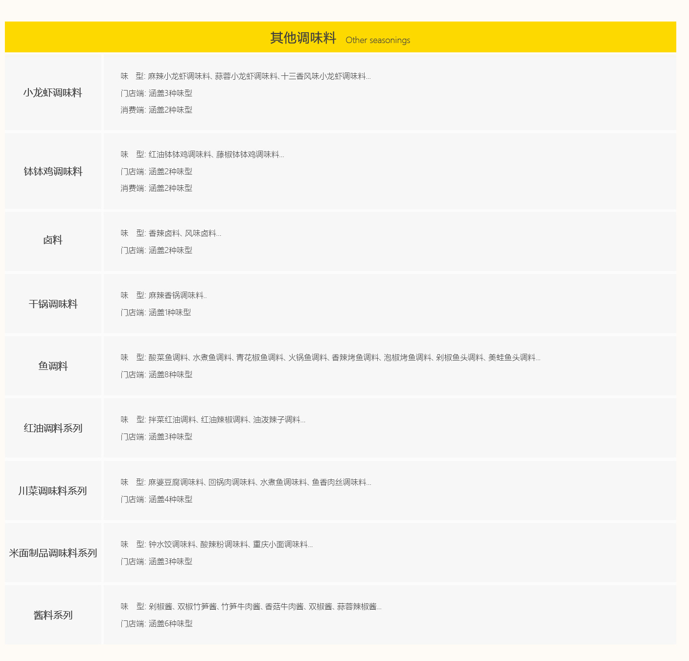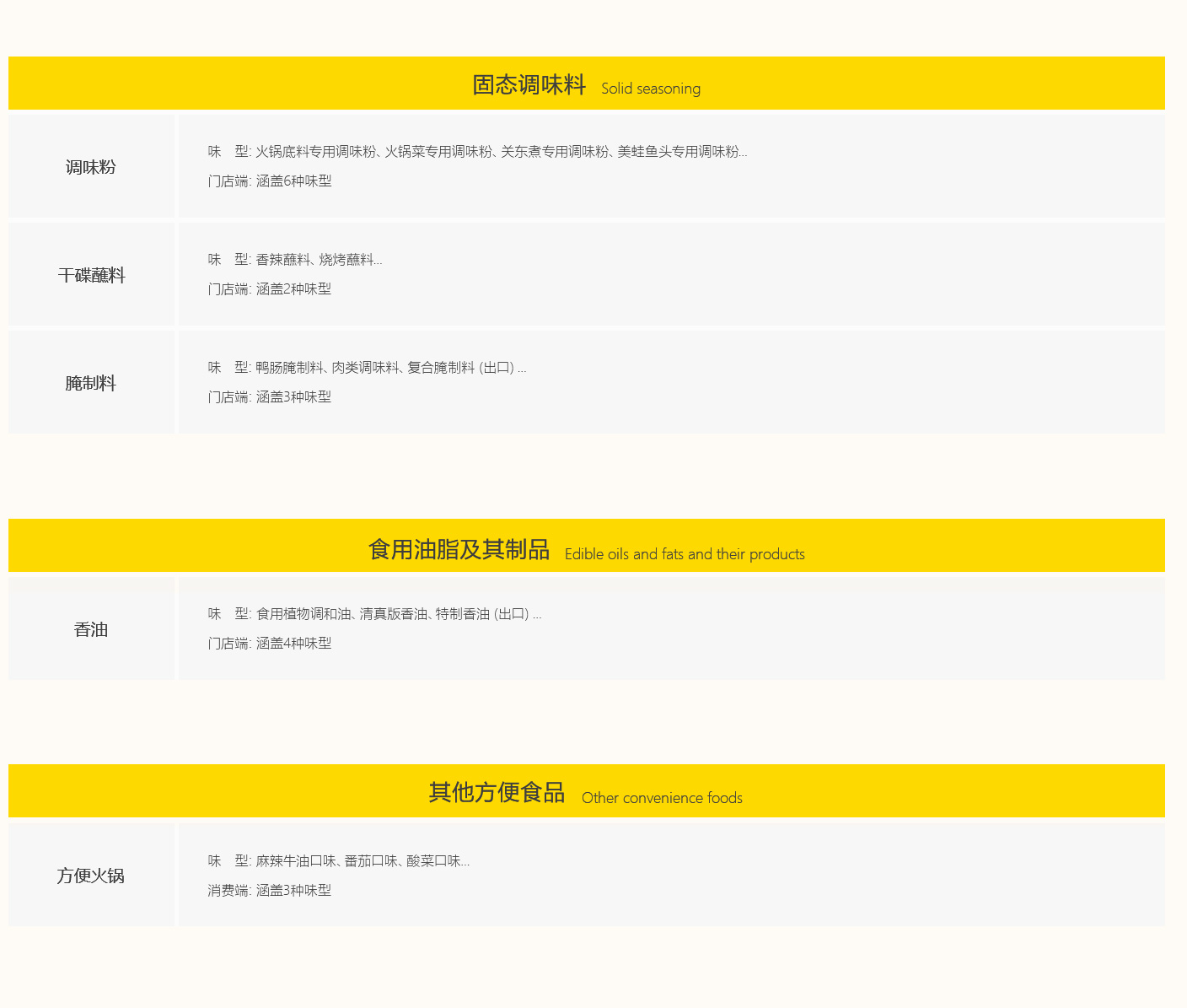 定制化業(yè)務(wù)范疇:精確把握客戶(hù)需求,為其提供產(chǎn)品服務(wù),從研發(fā)、技術(shù)設計、試制生產(chǎn)、后期維護等全方面多角度服務(wù)。為大型連鎖餐飲類(lèi)、餐飲食品快消類(lèi)、食品工業(yè)類(lèi)等客戶(hù)提供專(zhuān)屬個(gè)性化需求定制方案,包括產(chǎn)品口味定制開(kāi)發(fā)、產(chǎn)品配方定向化研發(fā)、產(chǎn)品精細化應用、產(chǎn)品標準化出品、菜品升級、餐飲專(zhuān)業(yè)咨詢(xún)服務(wù)。